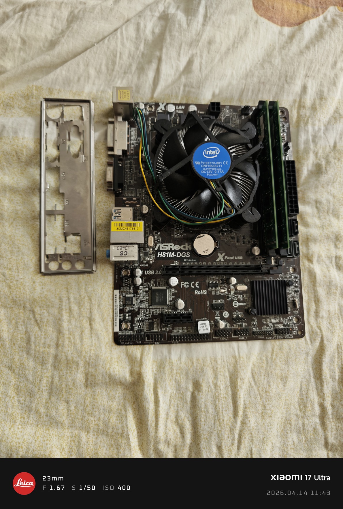 Alaplap,processzor hütővel,illetve hátlapi takaró lemez. Valamint 2 GB ddr3 memória.