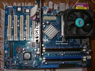 Asrock P4V88 + 2.2ghz proci + cooler +R9200SE videokártya + 256mb ram 7000ft