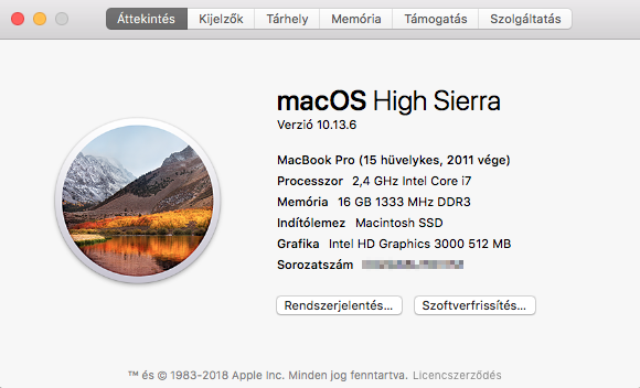 A gép sorozatszáma: CO2GN5U7DV7M