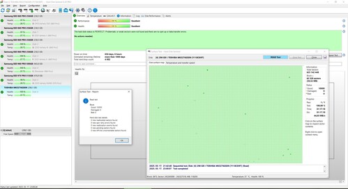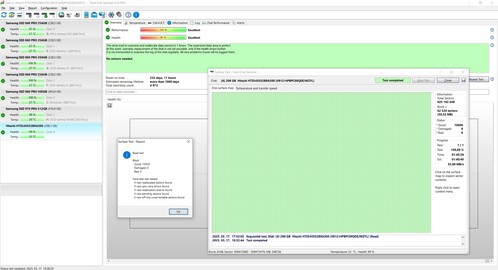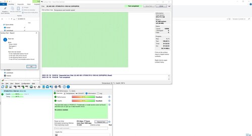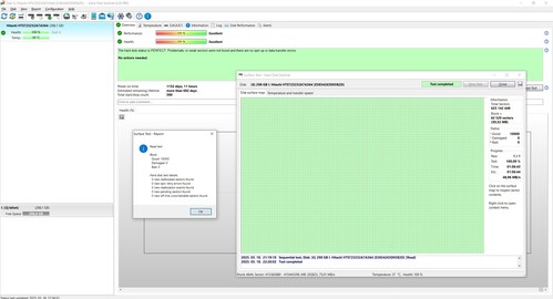 Hosszú HDSentinel felületteszt screenshotok a galériában.