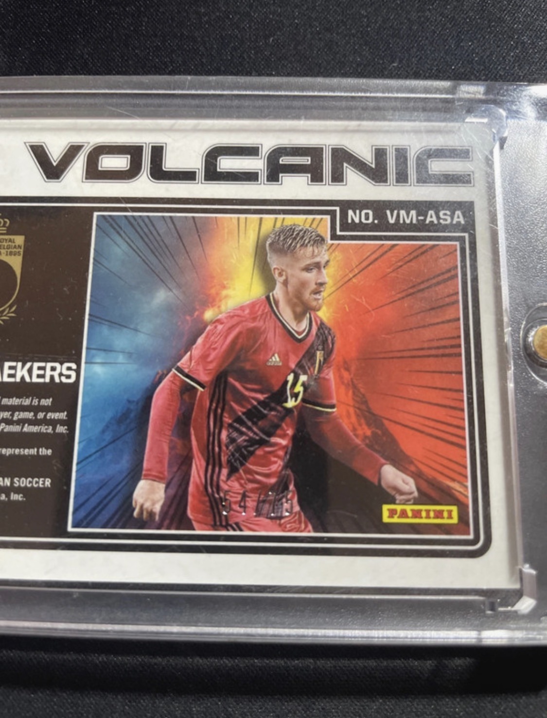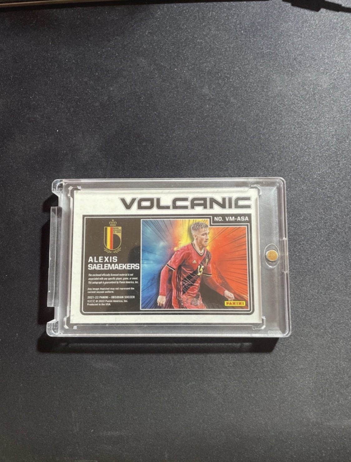 Eladó egy eredeti Panini Obsidian Volcanic kártya Alexis Saelemaekers játékostól.