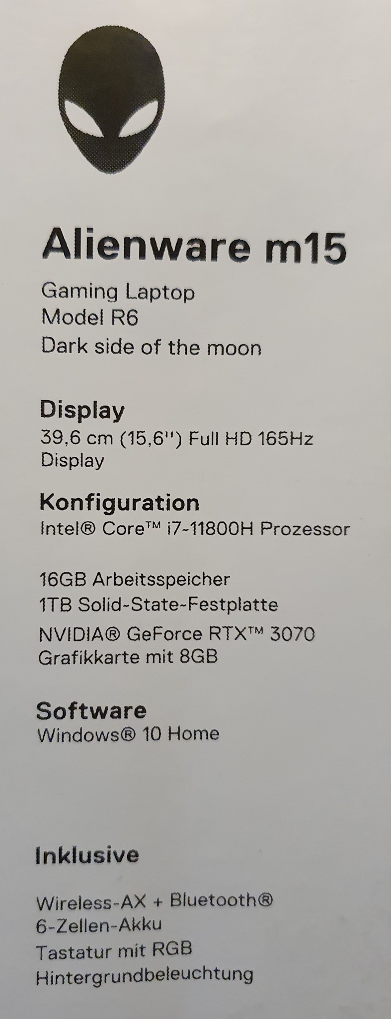 Alienware m15 R6 - i7 11800H / RTX 3070