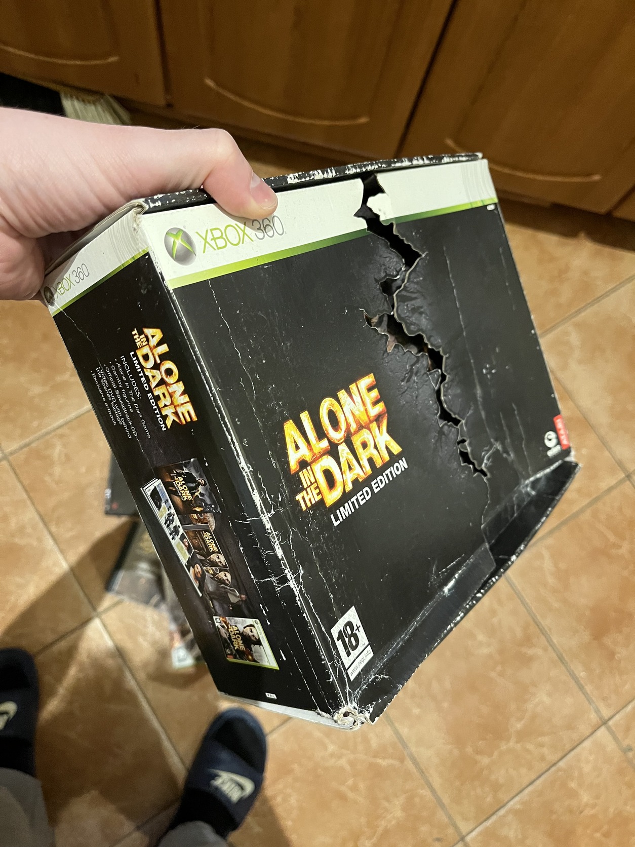 A erősen viseletes állapotban, de a hozzá járó extra tartalmak és a játék jó állapotban.
