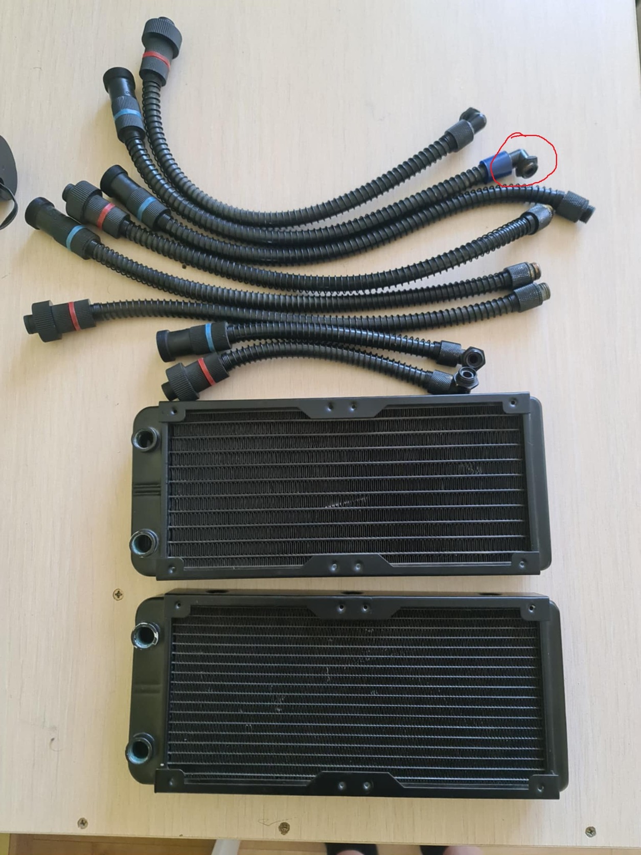 [link] Alphacool Eisbaer GPX Extension Set 90° 1 szett 32cm hosszú (a pirossak karikázott fitting ha úgy van rakva csepeg, nekem a tartály tetején volt betekerve ott nem volt gond vele) 2k