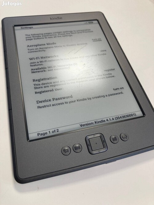 Amazon Kindle 4 (Wi-Fi-képes) eladó. Ez a típus nem érintőképernyős, és háttérvilágítás nélküli.