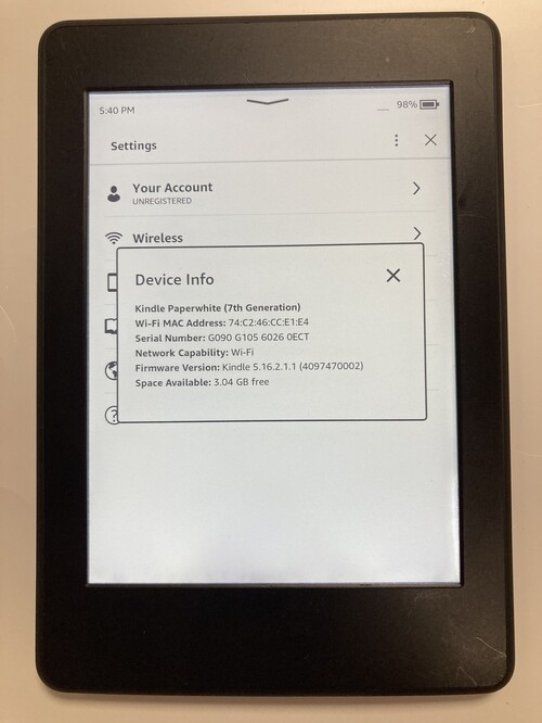 Amazon Kindle 7th Gen Paperwhite 3rd Edition DP75SDI (VG)