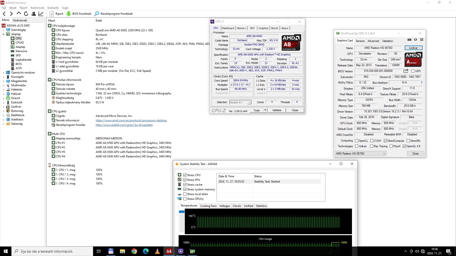 AMD A8 6500 / 3.5GHz- 4.1GHz (FM2), HD 8570 GPU-val