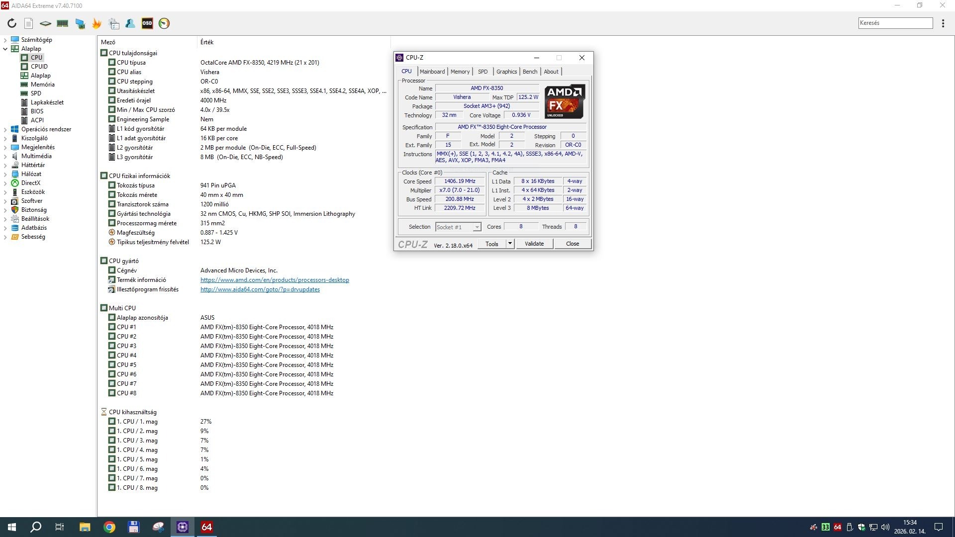 - FX-8350 8 mag - 8 szál - 4.GHz/4.2Ghz - 125W - Szorzózár mentes - 10000 FT