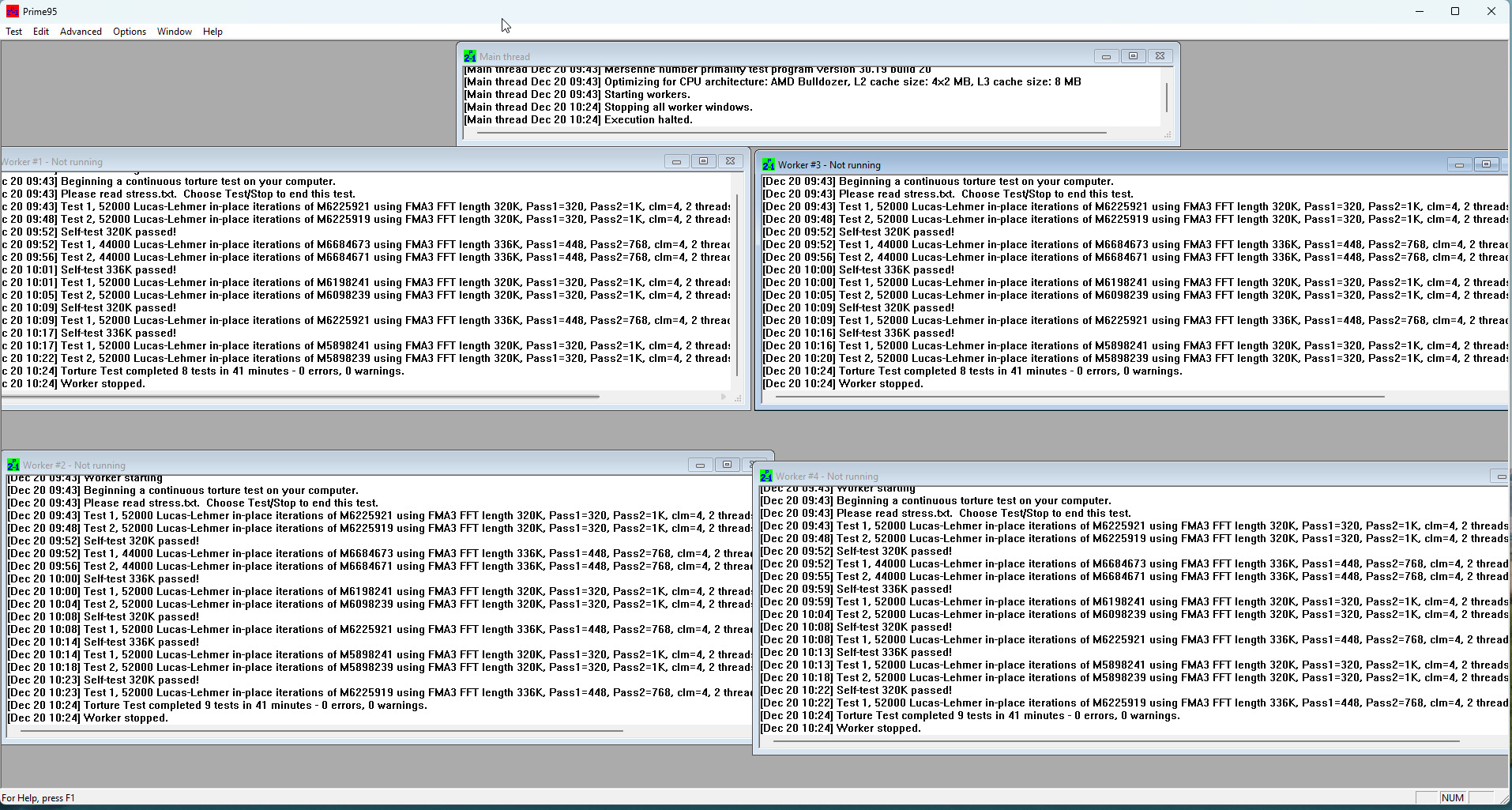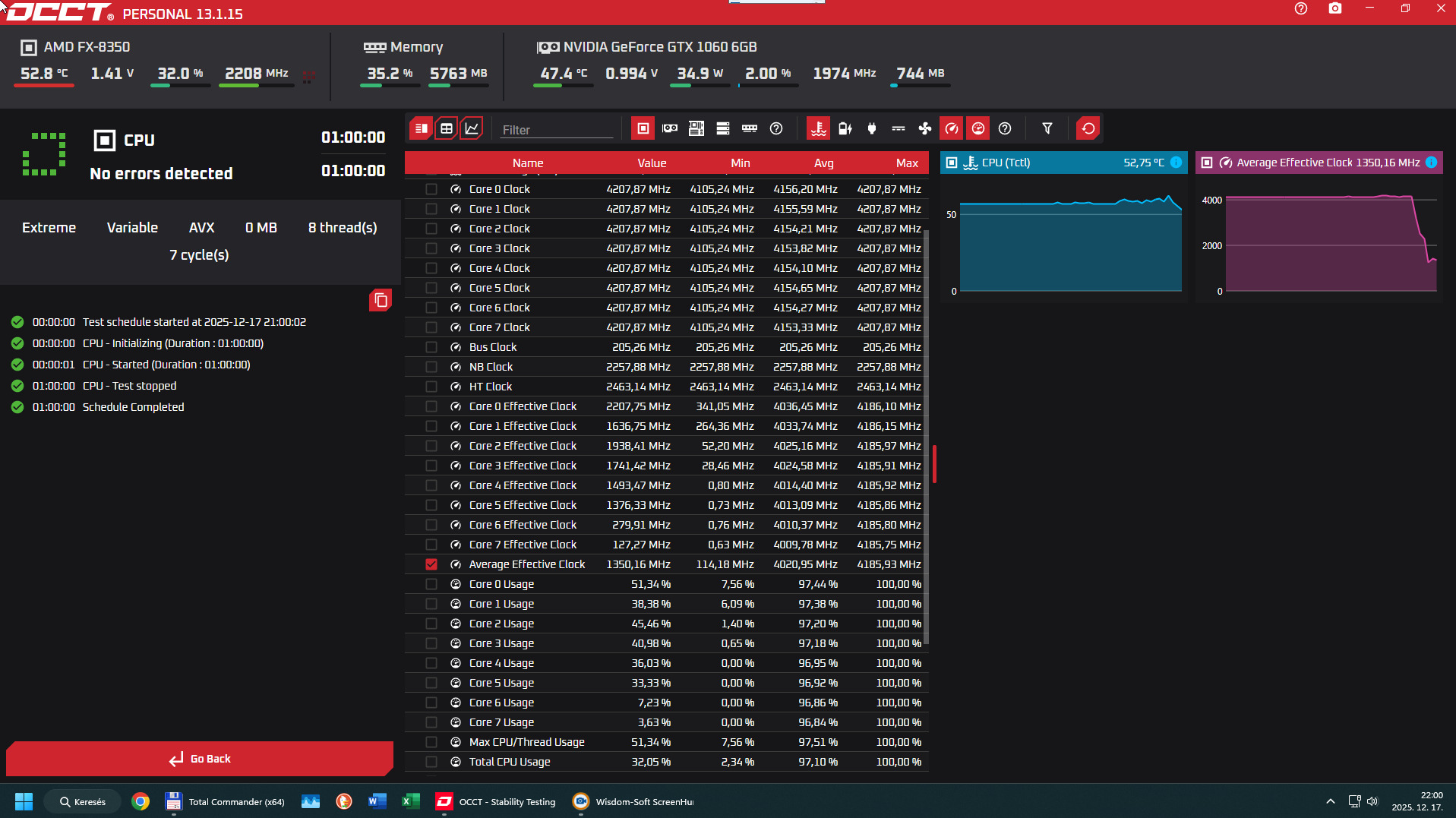 Az OCCT és a Prime95 CPU-tesztje sem talált hibát az 1 órás, illetve 40 perces futtatás során.