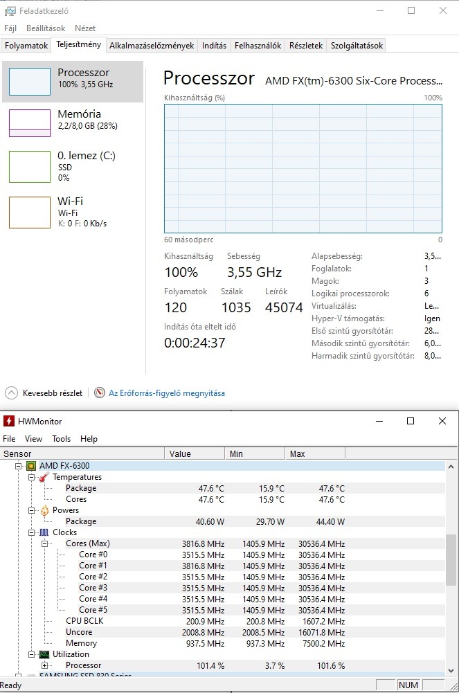 Feldolgozó szálak száma: 6 db
