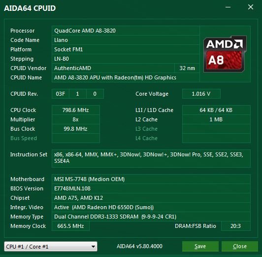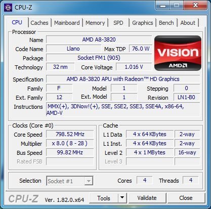 Processzor: AMD A8-3820 Quad-Core 2.5GHz
