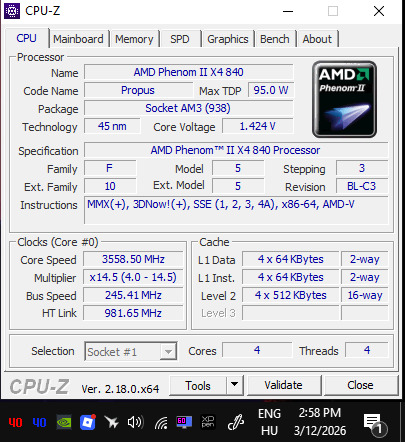 AMD Phenom II X4 840 95W 3,2GHz