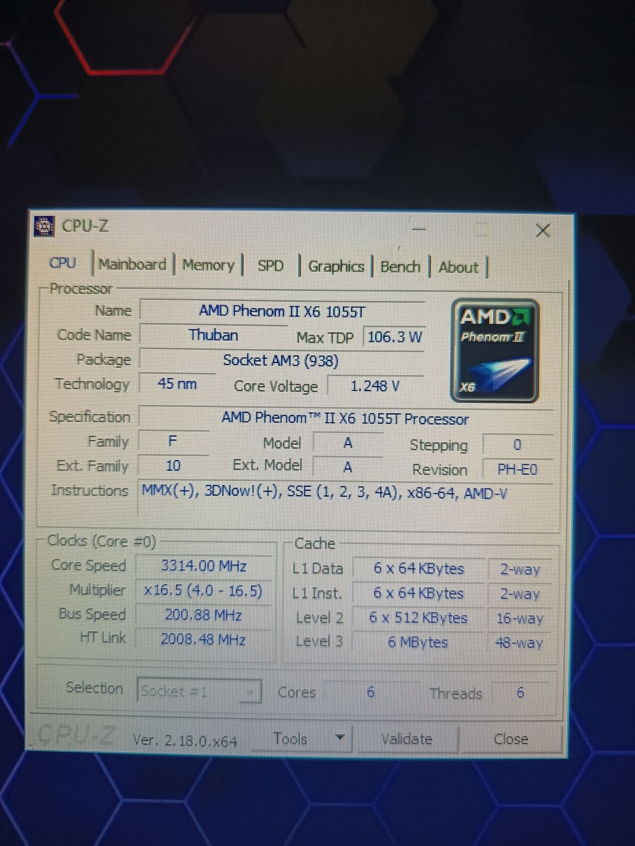 AMD Phenom II X6 1055T 6c 6t 2,8ghz CPU