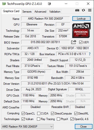 AMD Radeon RX 580 8GB 2048SP
