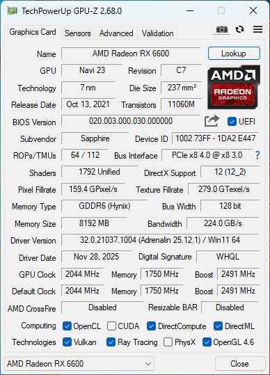 • Típus: AMD Radeon RX 6600 8GB