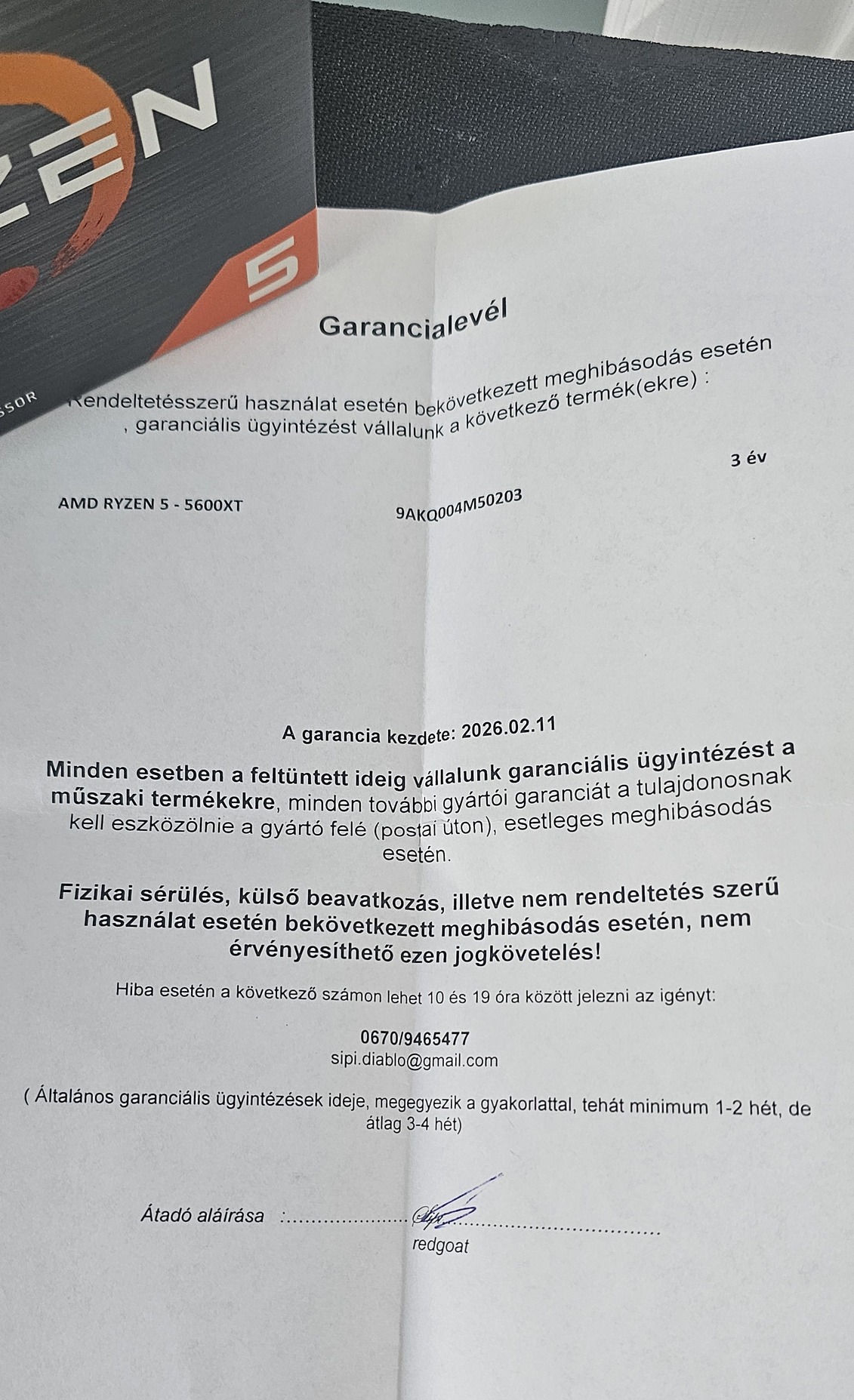 3 órát használt AMD Ryzen 5 5600XT processzor, dobozával és nem használt gyári hűtőjével.