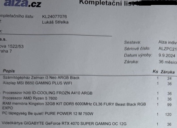 Purchased on 12.09.2024 (Alza, EU).