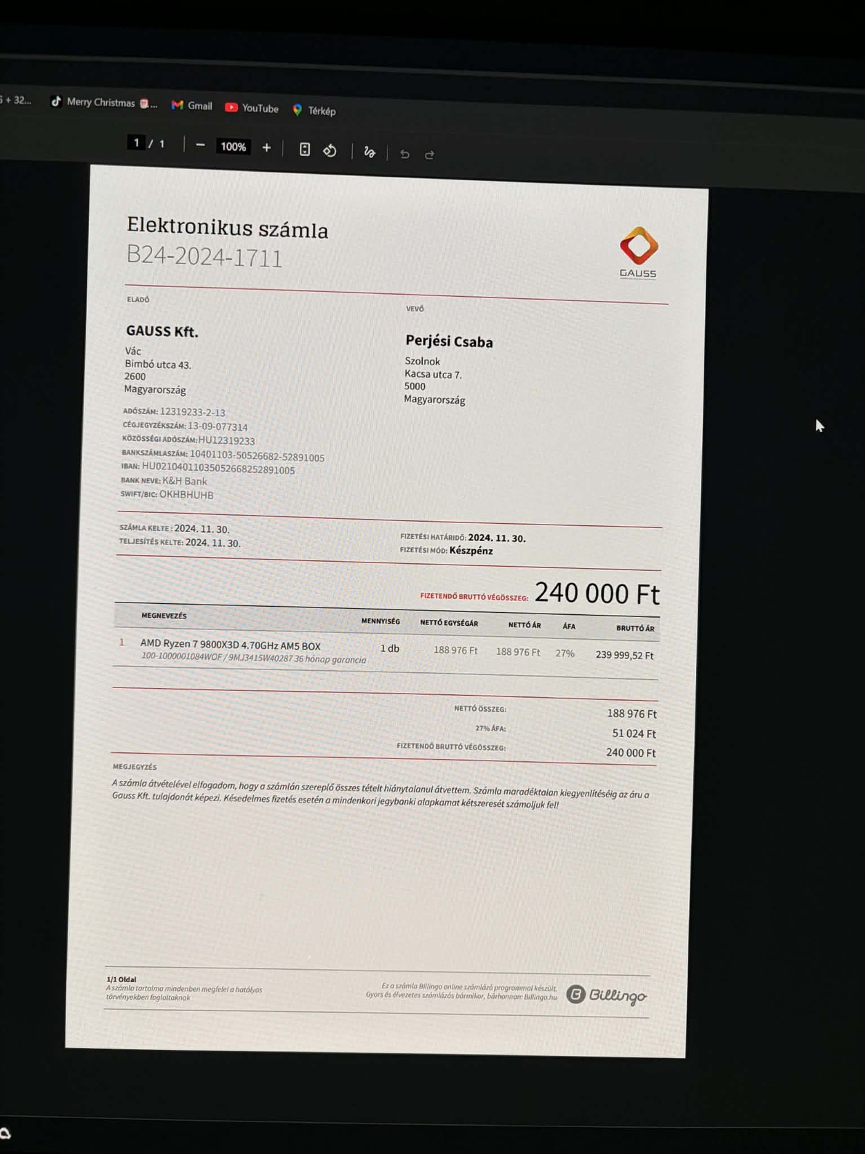 AMD Ryzen 7 9800X3D 2027.11.30 ig garanciális