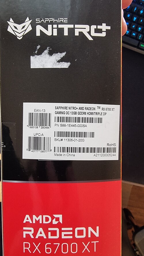 AMD Sapphire NITRO+ RADEON 6700XT GAMING OC 12GB