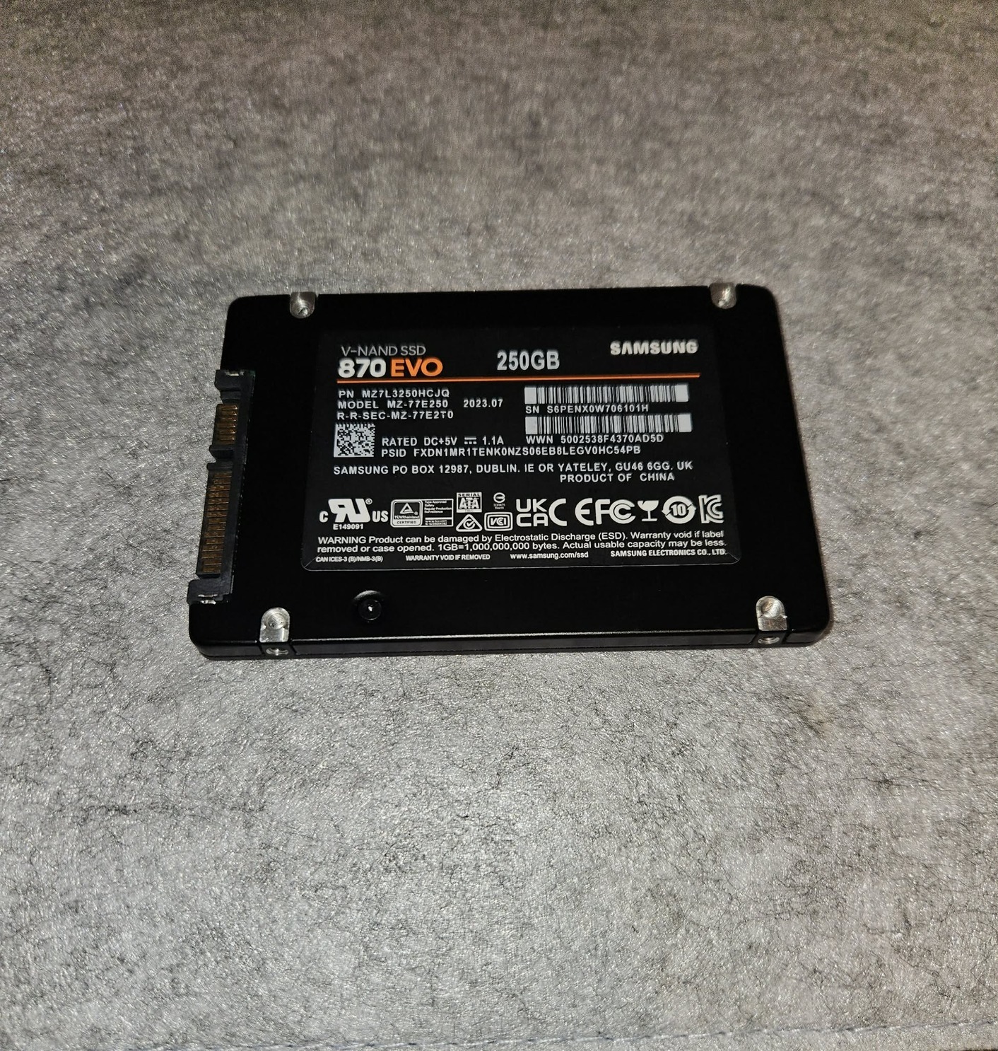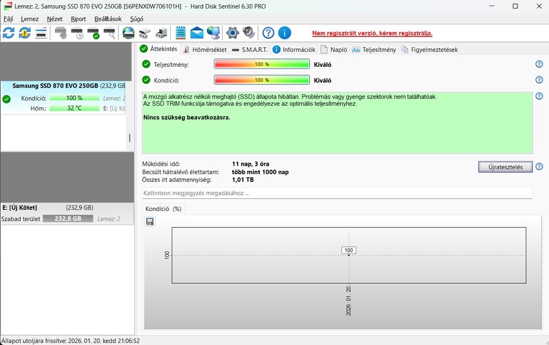 Eladó egy keveset használt Samsung 870 EVO SATA 2.5 - 256 GB - SSD, típusú SSD.