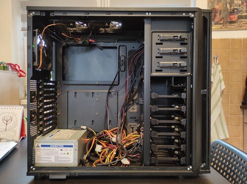 illetve egy kitakarított, tesztelt Chieftec 450W tápegység.