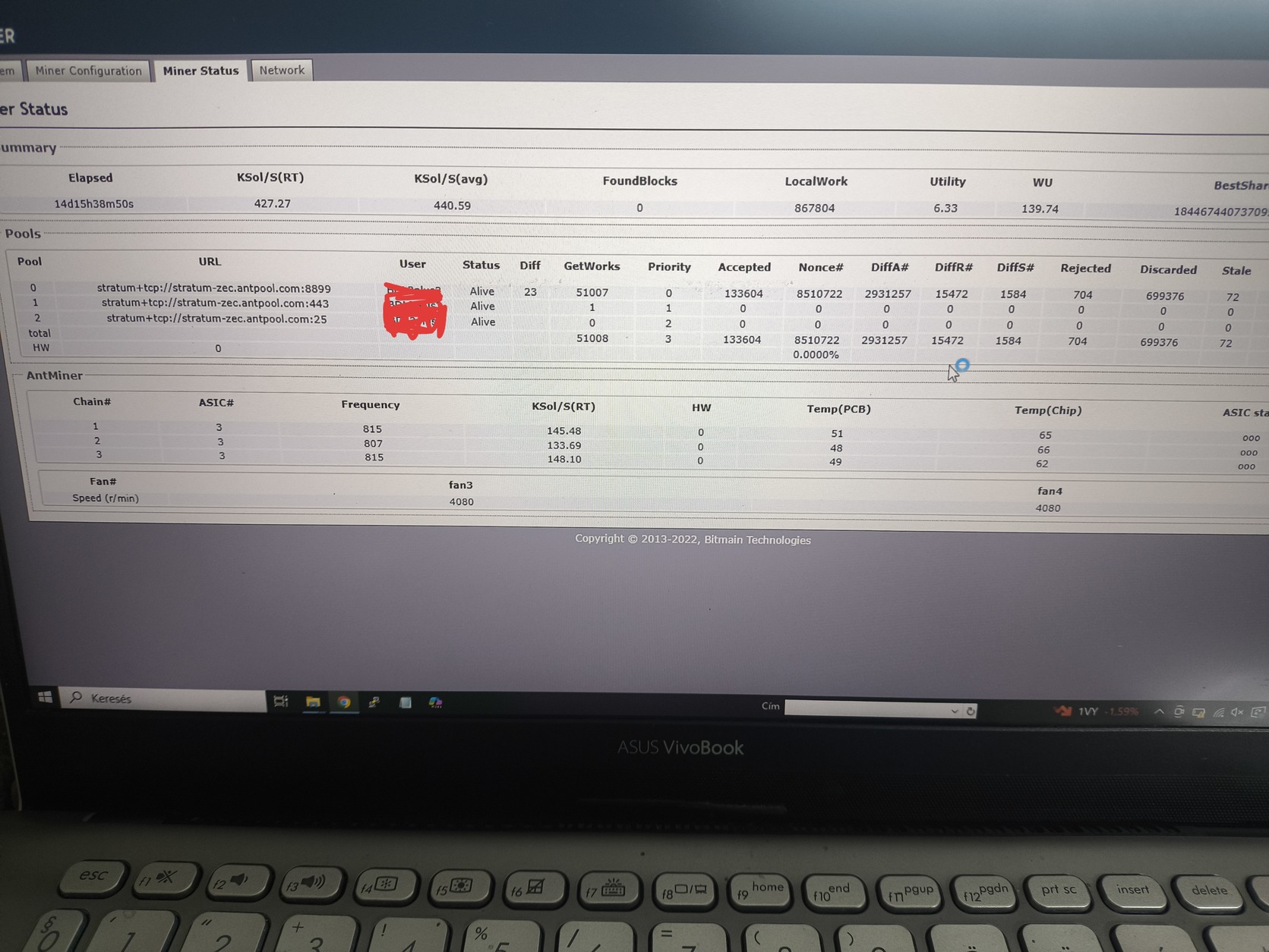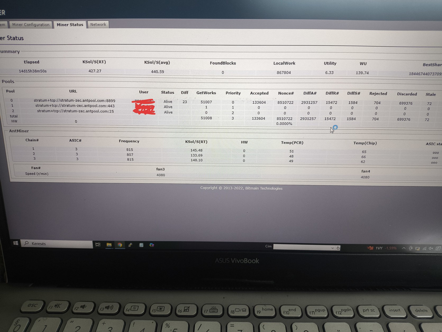 Eladó 2 db stabilan működő Antminer Z15 ( Zcash ZEC, horizen ZEN), gyári tápokkal!
