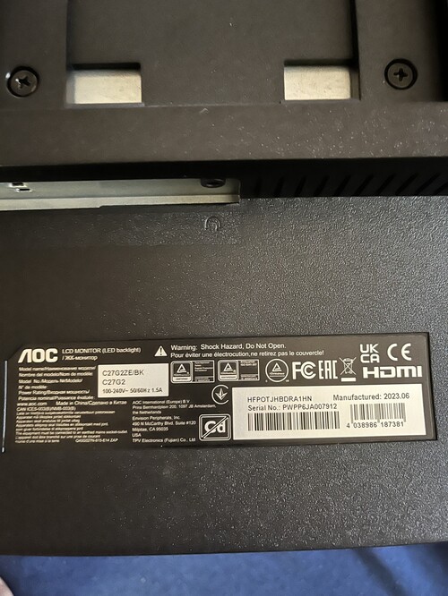 AOC C27G2ZE/BK 240hz 0.5ms 27col