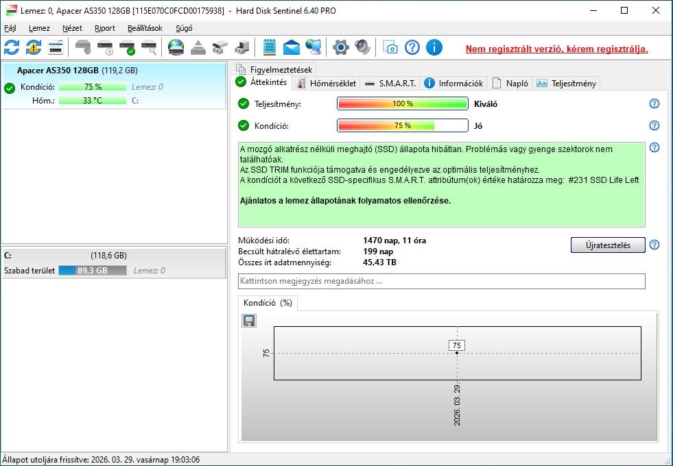 Eladó a címben említett SSD. Tesztelt, kifogástalan állapotban. HD Sentinel szerint 100/75 (képet csatoltam).