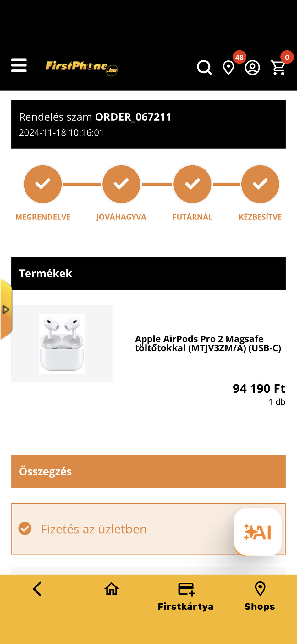 csak személyes átvétel