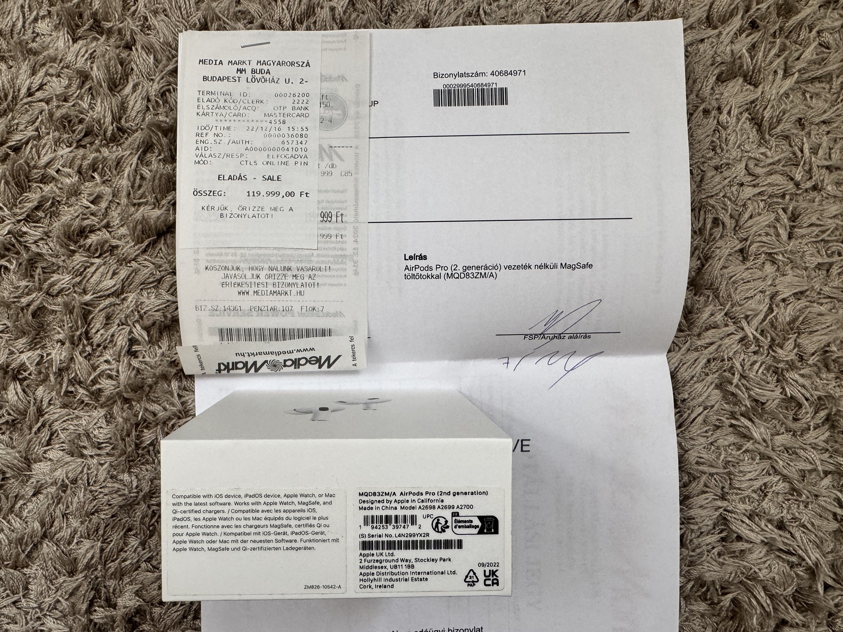 Áron alul eladó a képeken szereplő Apple Airpods Pro 2. A nyomott ár oka, hogy a jobb oldali füles basszusoknál recseg. Ha nem szoktál basszusokkal teli zenéket hallgatni, akkor még teljesen jól használható. A tok karcos. Az akkumulátora teljesen rendben van, nem érződik rajta gyengülés. Nem USB C-s, hanem Lightning csatlakozós, és persze MagSafe-es. 2022.12.16-án lett vásárolva a Media Marktban, így a garancia már nem él rá. Rendszeresen tisztítva, és természetesen így is adom át.