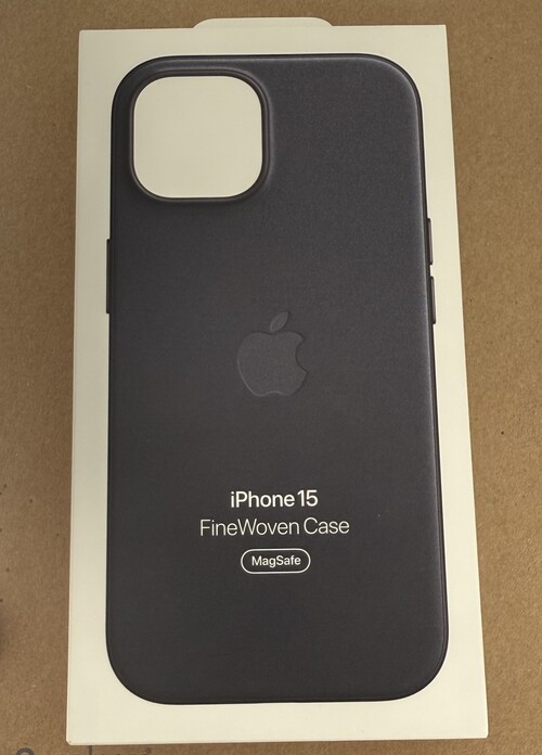 Eladó egy eredeti Apple FineWoven tok iPhone 15 -höz, fekete színben.