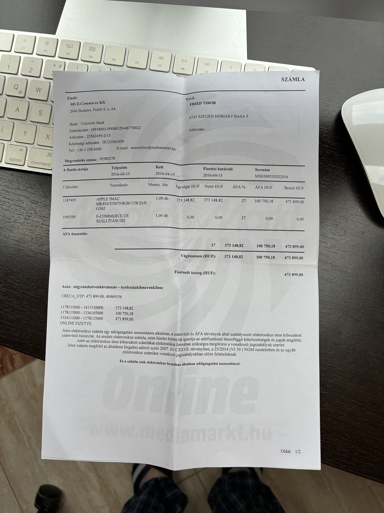 2016 -ban vásárolt iMac eladó. Csak privát használatban volt, emiatt tökéletes állapotban van. Eredeti doboza és tartozékai megvannak a számítógépnek. 8GB-os RAM és 1TB-os tárhellyel rendelkezik. Irányár 130.000ft és minimálisan alkuképes. Érdeklődni a +36705279200 telefonszámon lehet.