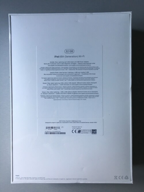 Kijelzőméret: 9,7 " Kijelző felbontás: 2048 x 1536 Pixel Memória: 32 GB Memória bővítés: nem bővíthető Processzor típus: A10 Fusion Operációs rendszer: iOS 11 Adatátvitel: WiFi, Bluetooth WLAN típusa: 802.11a/b/g/n, 802.11ac Beépített kamera: 8 megapixeles Csatlakozó: Lightning Tartozékok: Lightning–USB átalakító, USB hálózati adapter Egyéb: Fényérzékelő, Gyorsulásmérő, Multi-touch kijelző, Retina kijelző, Sztereó hangszóró, giroszkóp, Ujjlenyomat olvasó, FaceTime HD-kamera Akkumulátor kapacitás: 32,4 Wh Li-polymer Méret: 169,5 x 7,5 x 240 mm Súly: 469 g