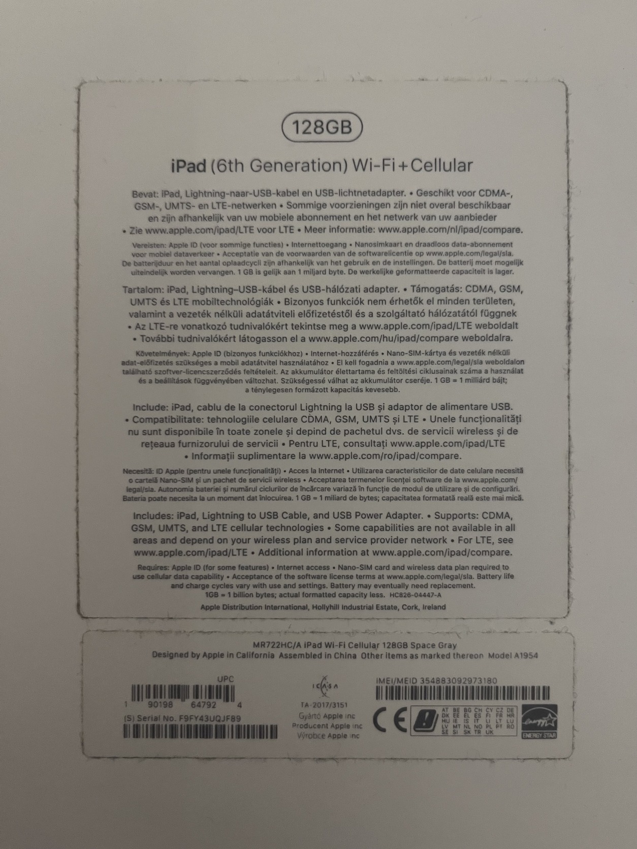 Apple iPad 6th gen 128 Gb + Cellular