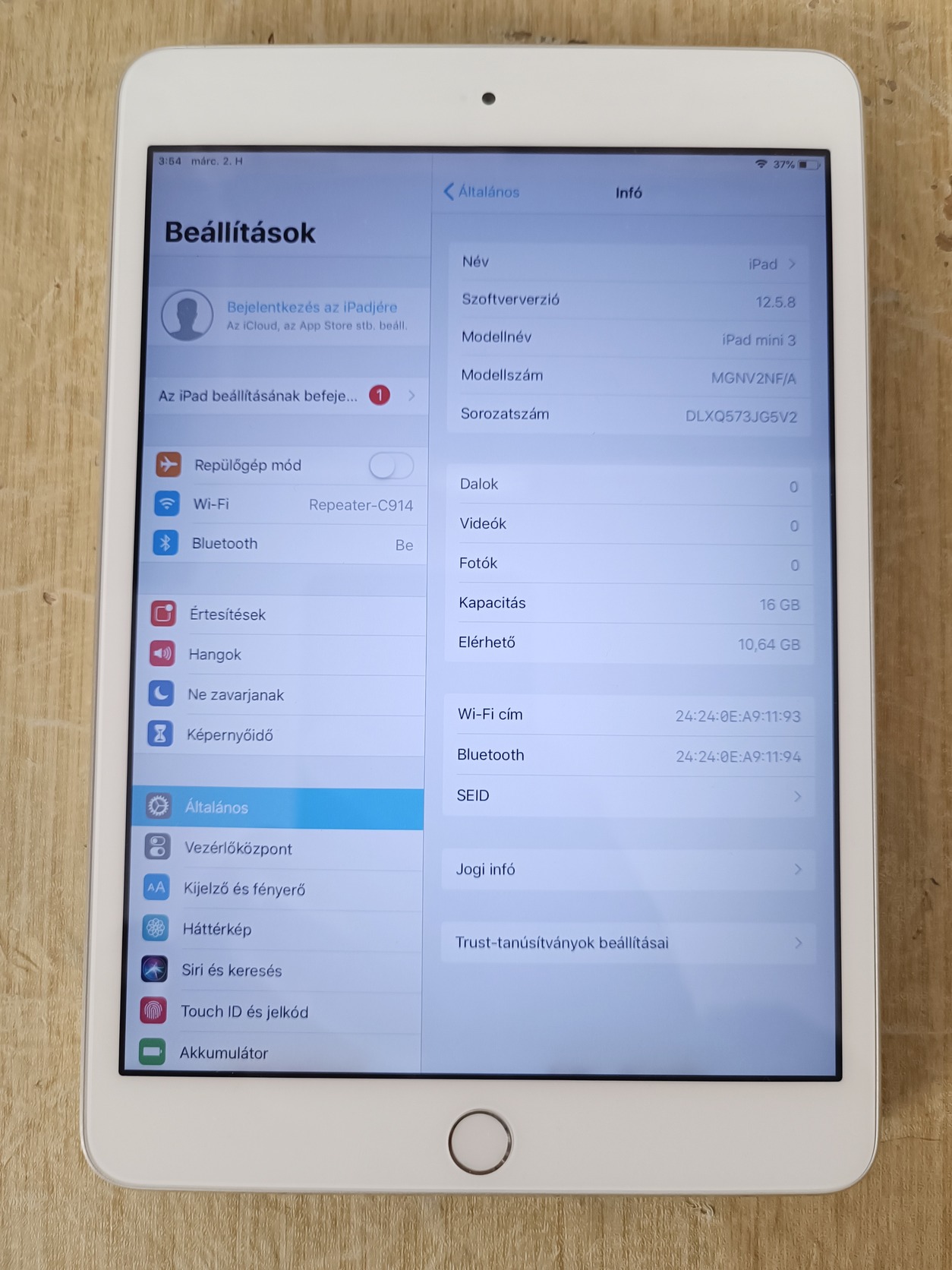 📱 Terméknév: Apple iPad mini 3 (Wi-Fi) 16GB Ezüst ( A1599)