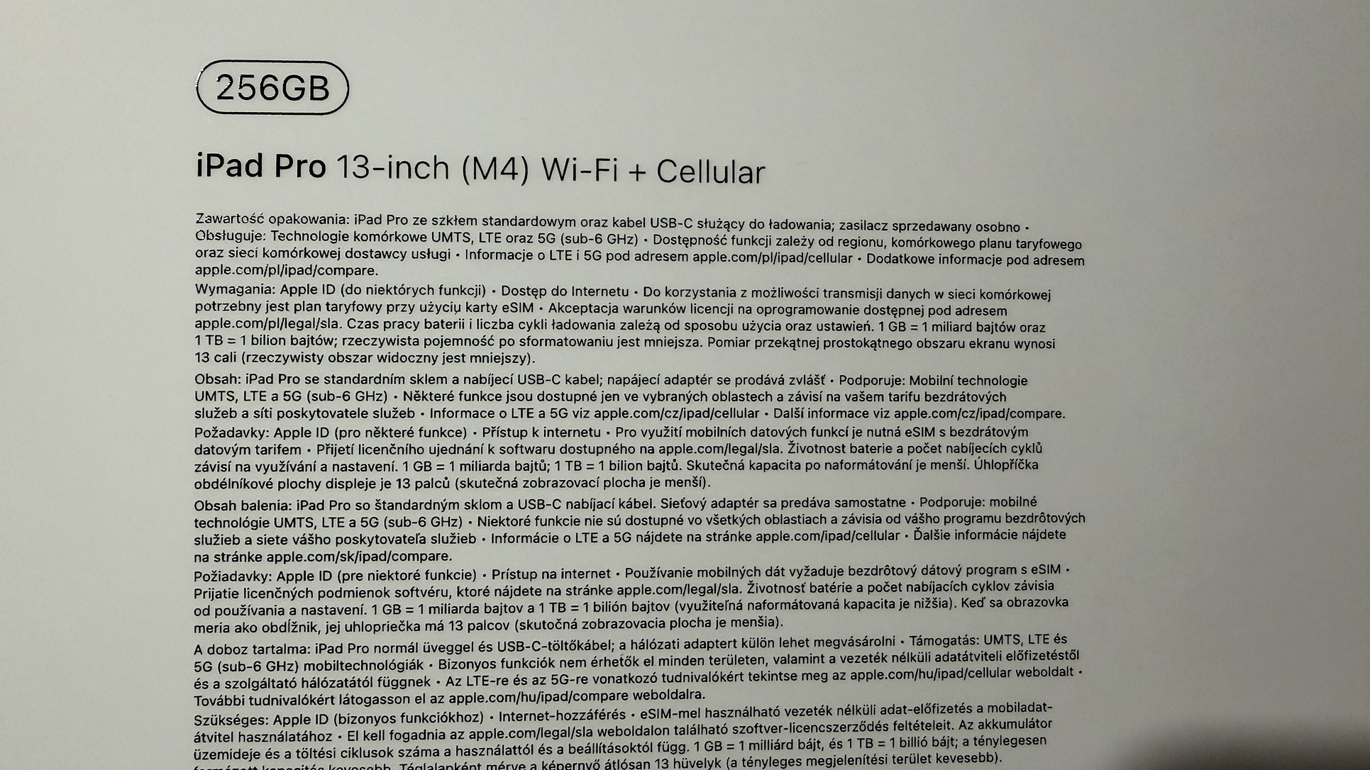 256 Gb, Wifi+Cellular.