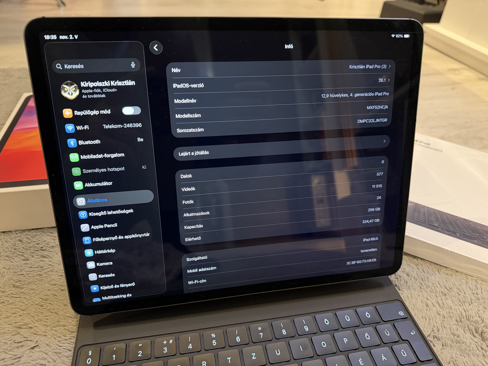 Eladó egy makulátlan iPad Pro 2020 verzió + Magic keyboard új 2 napos , iPad mellé adok üveg fóliát is , mai napig bitang erős gép , új ios 26 oprendszerrel!