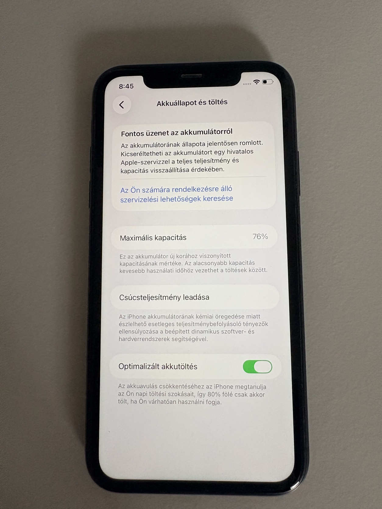 - Akkumulátor állapot: 76%