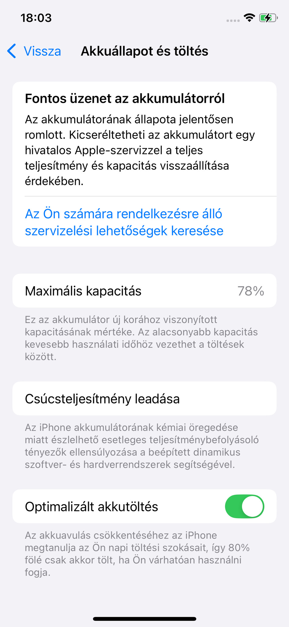 Akkumulátor állapota: 78%
