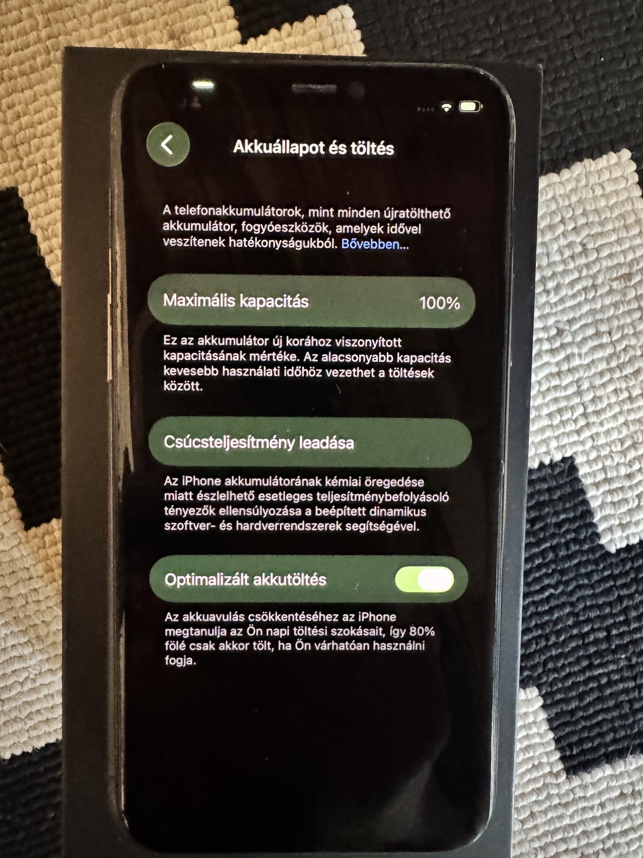 Alaplap, Face ID, True Tone szenzor: tökéletesen működik Mindhárom kamera és a kamerák AF-motorjai: hibátlanok Hangszórók, mikrofonok, érzékelők: rendben Akkumulátor: minőségi utángyártott, professzionálisan elvégzett BMS-átültetéssel, így a Beállításokban valódi 100%-os állapotot mutat parts pairing figyelmeztetés nélkül. Eredeti gyári doboz, kiegészítők megvannak Ajándékba adom: új fólia + 1 db zöld szilikon tok
