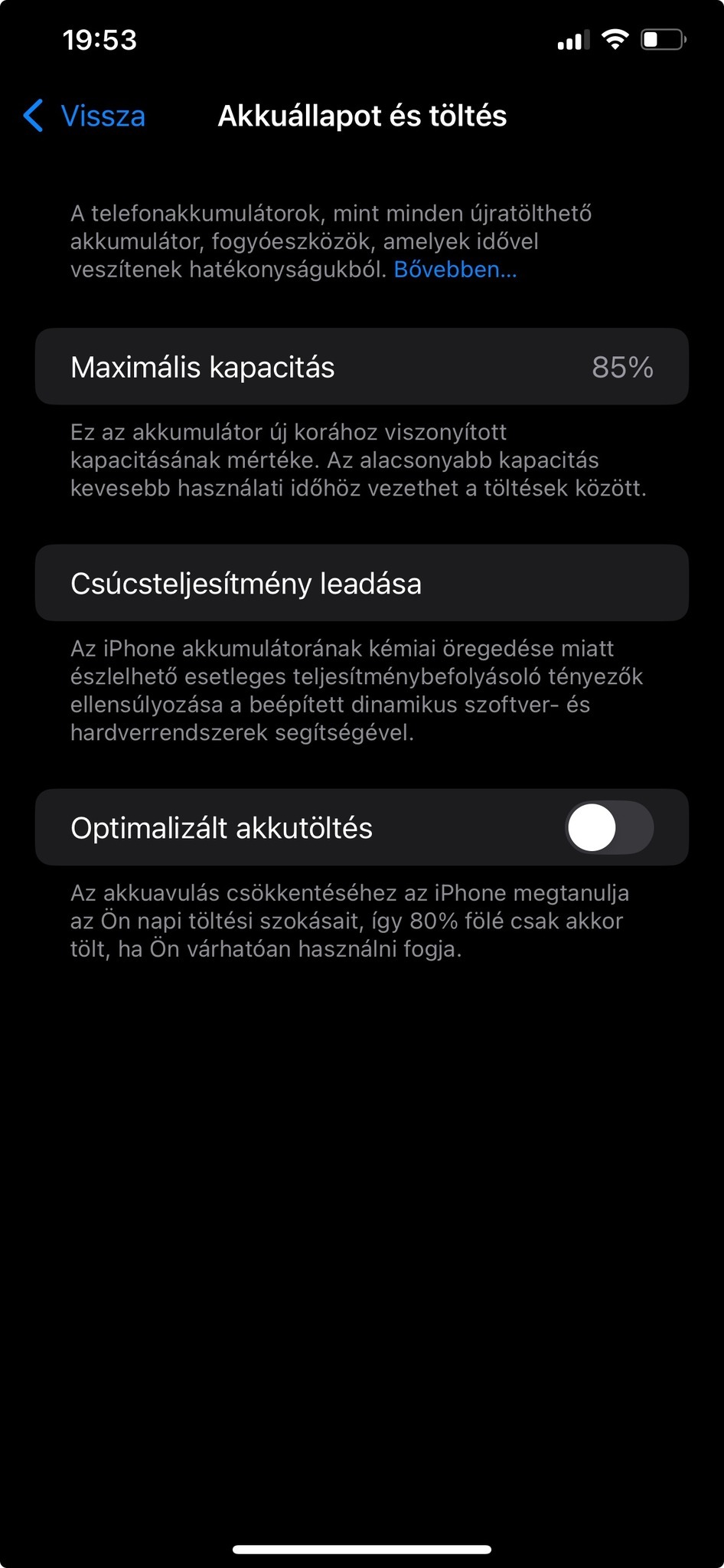 Akku 85%-os (kép csatolva).