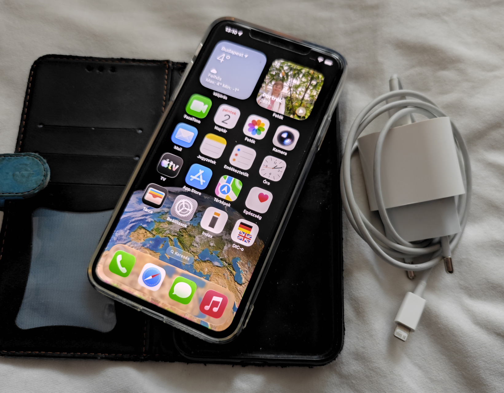 szilikon hátlappal és gyári 20W Apple töltővel+USB-Lightning kábellel.