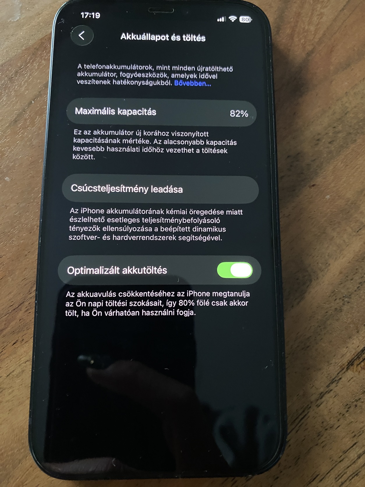 Az akkumulátor kapacitása 82%, a kijelző pedig a kezdetektől üvegfóliával védett. A hátlap teljesen karcmentes, a készülék mindig tokban volt.
