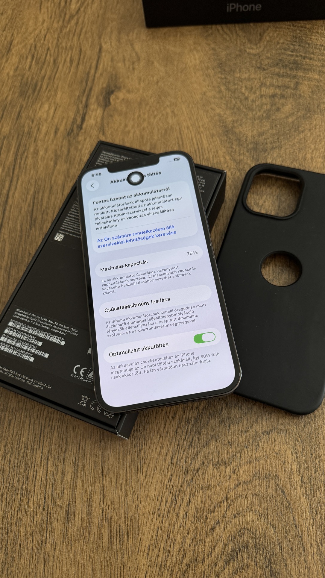 Akkumulátor: gyári 75% (egy napot így is bír)