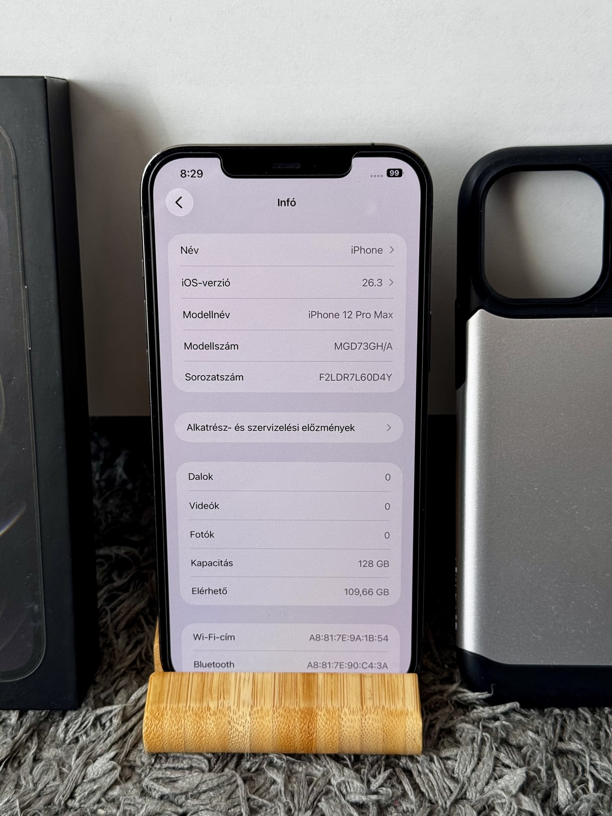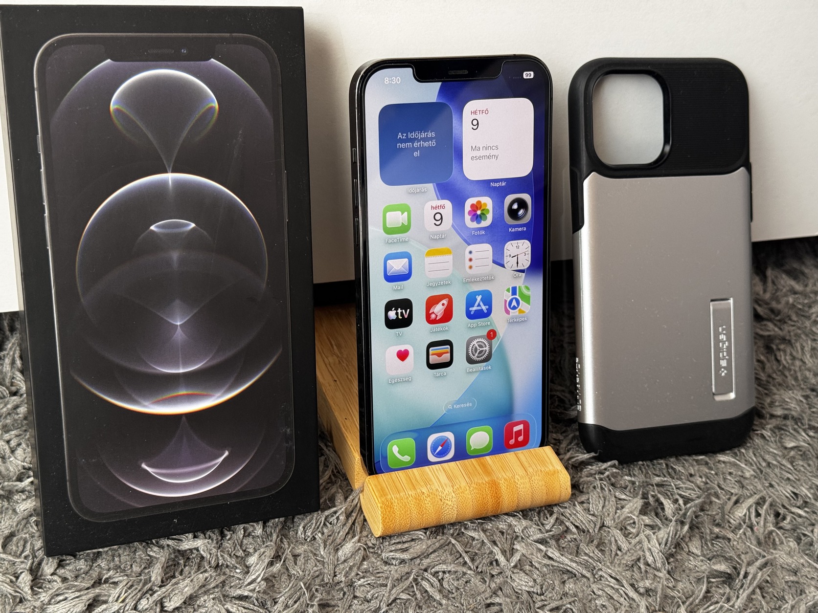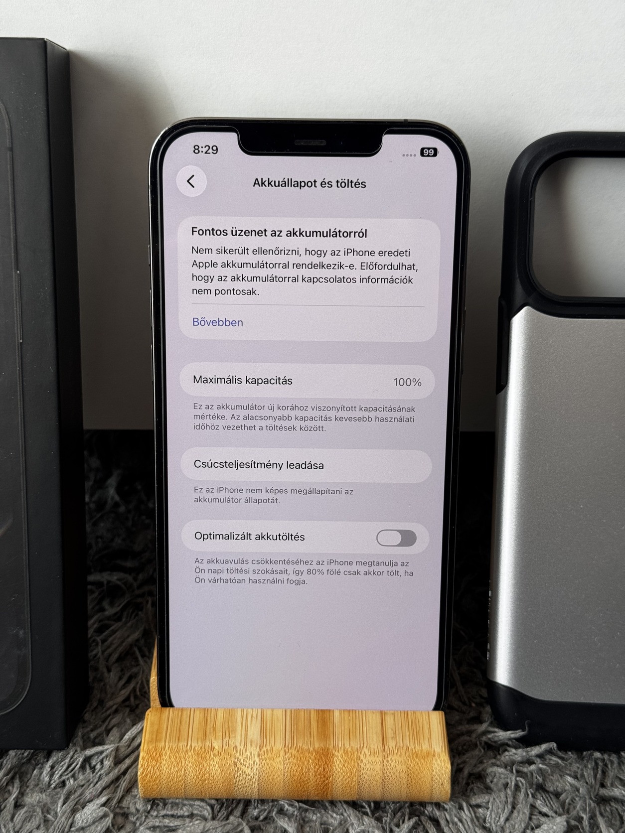 Dobozában tartozék kábel és tok.
