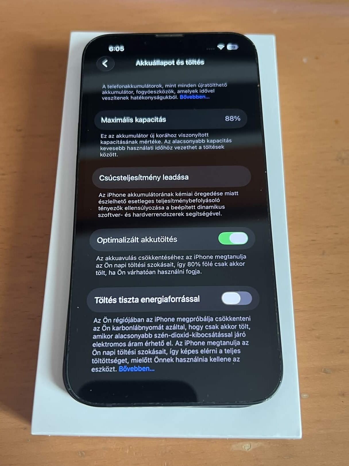 Az akkumulátor maximális kapacitása 88%.