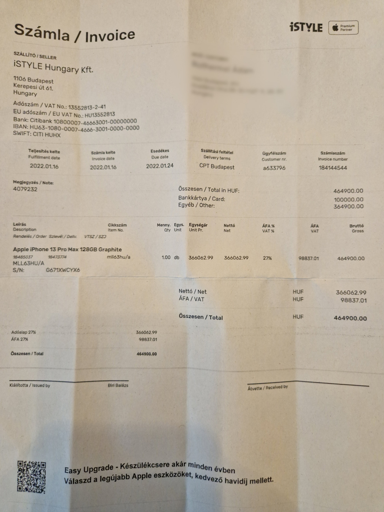 Eladó egy nagyon szép állapotú, teljesen karcmentes grafit színű Iphone 13 pro max (128Gb-os verzió), ami gyárilag független, Istyle vásárlás volt (számla mellékelve). A készülék gyári állapotú, sohasem volt megbontva vagy javítva, minden funkciója hibátlanul működik. Az akkumulátor 85%-os. Minden eredeti tartozéka megvan és jár hozzá.