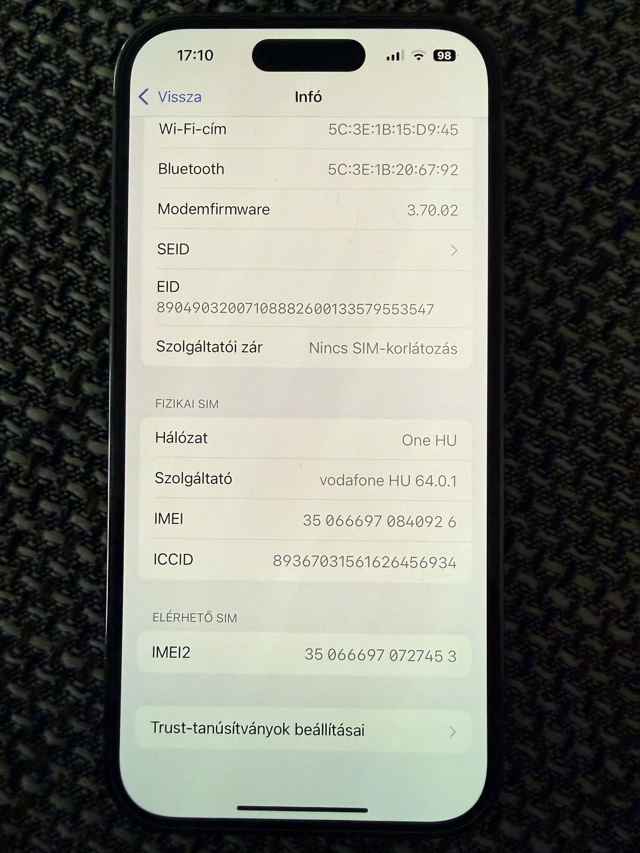 A telefon gyári független.