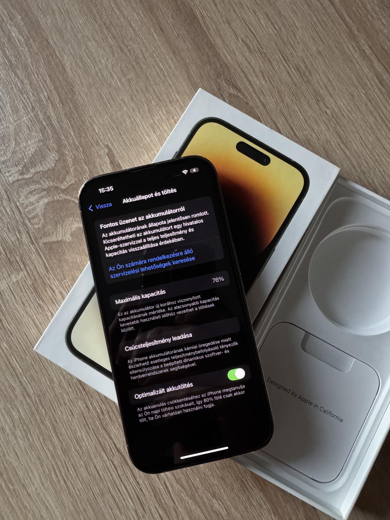 akku gyàri: 76% , 1 napot siman kibir.