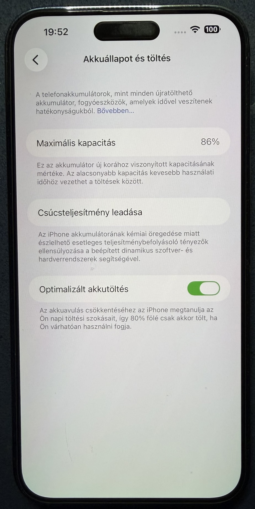 Akkumulátor 86%-os, kibírja a napot.